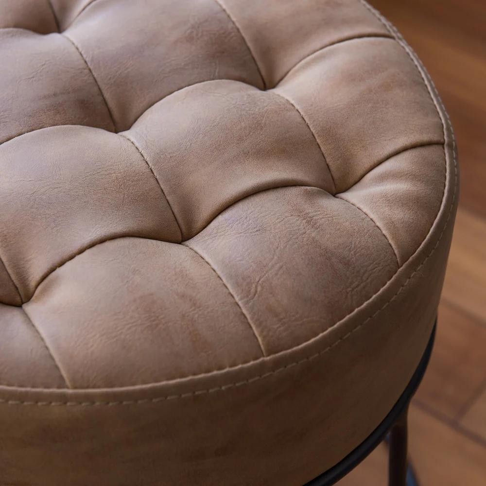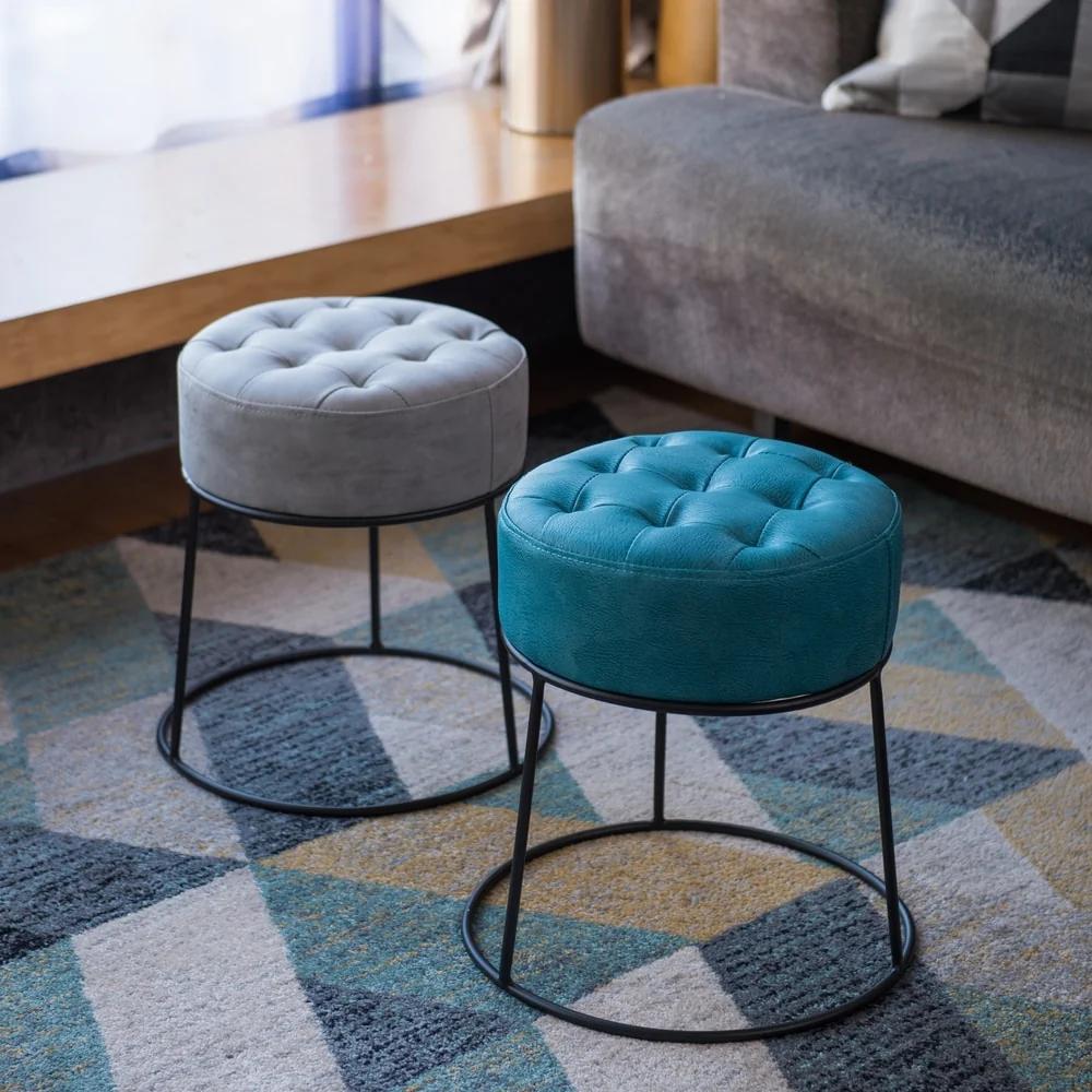 Out of StockArt-Leon Faux Leather Stackable Footstool Ottomans, one in light gray and the other in blue. Ottomans are versatile pieces of furniture that typically lack backs or arms and can serve multiple purposes. They originated in Turkey during the Ottoman Empire and were introduced to Europe in the late 18th century. Today, ottomans are used as seating, footrests, coffee tables (when paired with a tray), and even storage solutions. They can also be paired with reclining chairs.