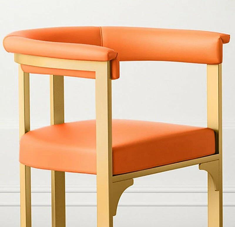 This contemporary dining chair features a sleek, upholstered seat and backrest, offering a comfortable and stylish seating option. The open-frame design with vertical and horizontal supports provides a sturdy structure, complemented by gracefully arched legs for added elegance. The chair's smooth upholstery and cushioned seat ensure long-lasting comfort, making it an ideal choice for dining areas or casual living spaces. Its minimalist yet bold design adds a touch of sophistication to any setting.