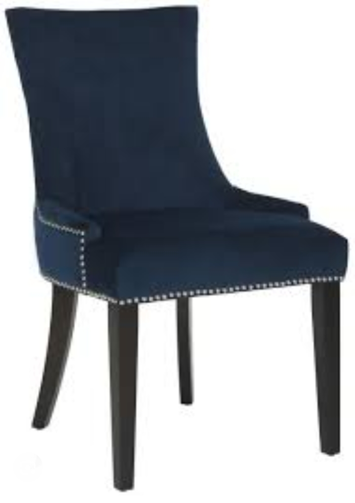 Navy Blue Nailhead Dining Chair – Curved Backrest with Espresso Wood Legs